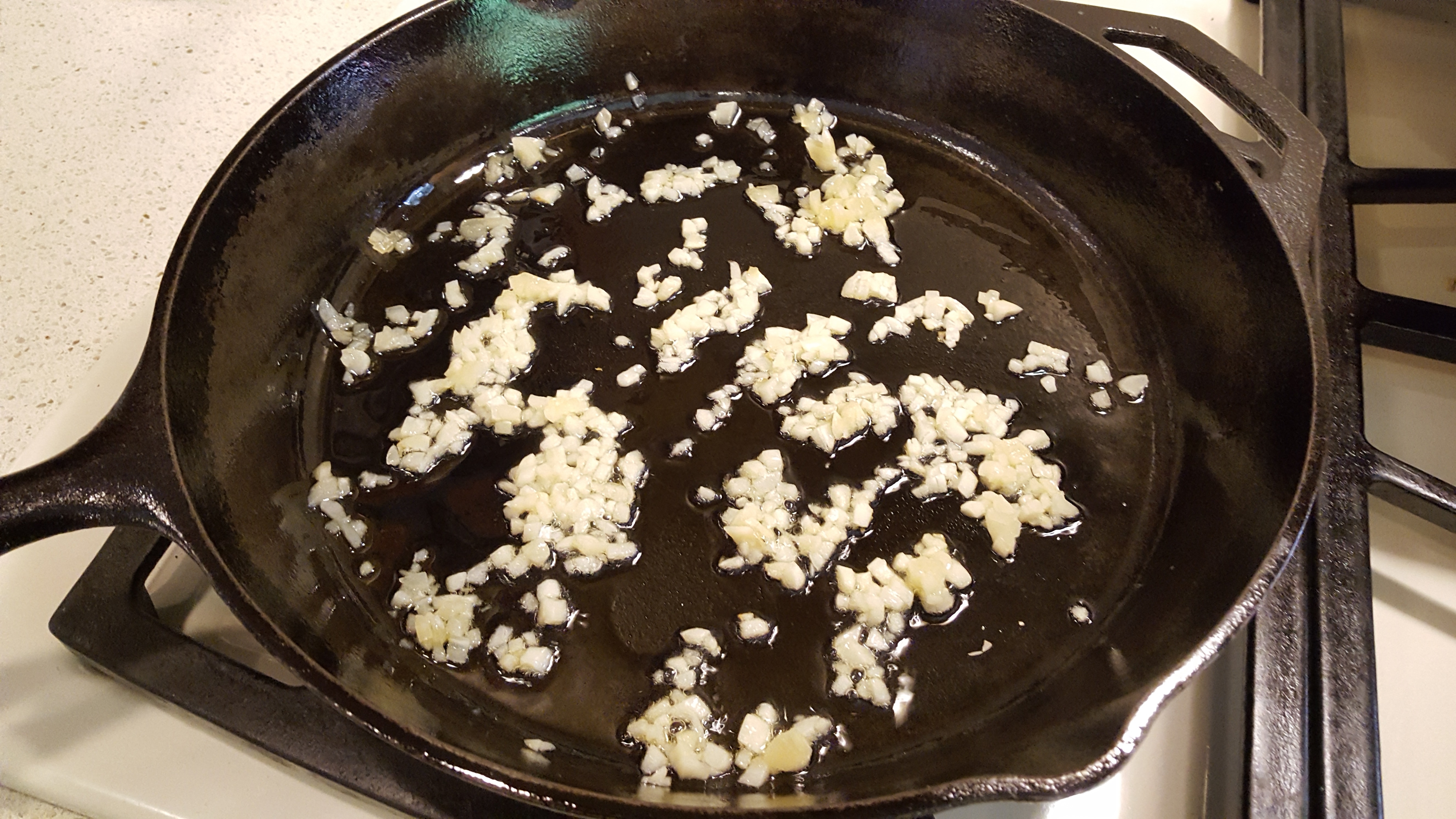 Sauté Garlic very briefly (approx. 30 seconds — you don’t want it to burn.)