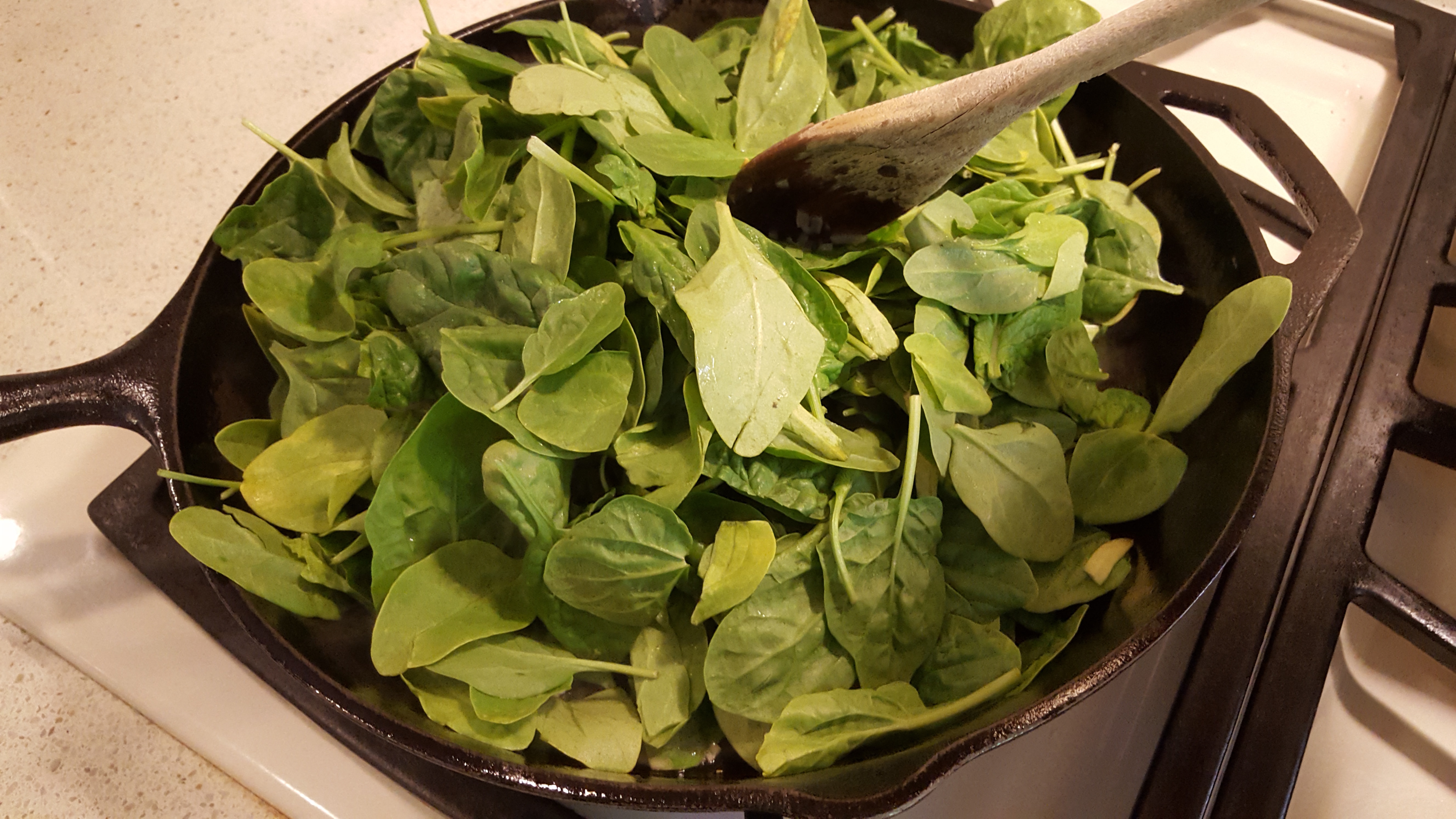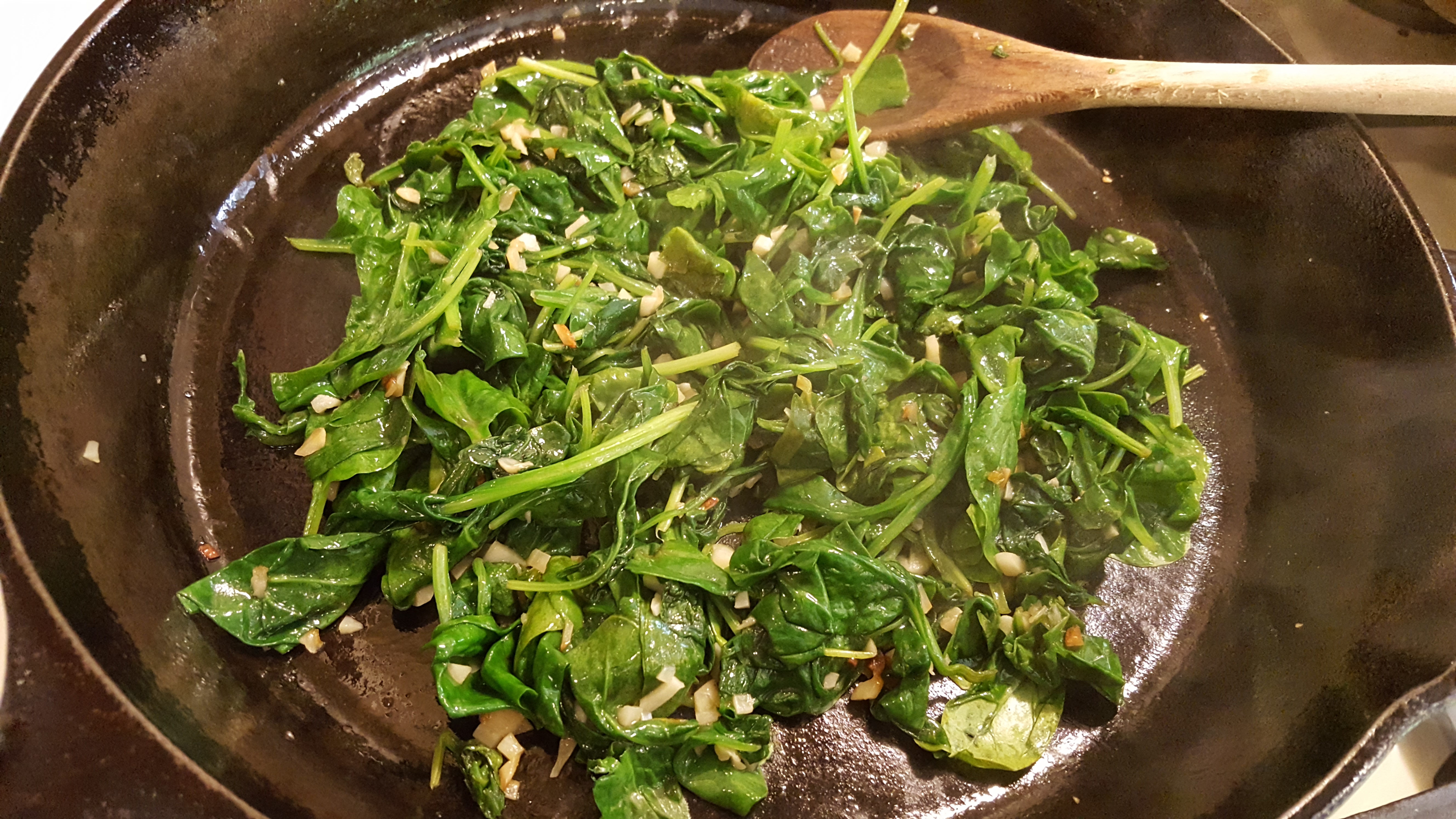 Add the Spinach, and Sauté over medium heat until the Spinach is wilted and cooked.