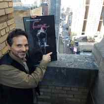 On the terrace of my current office holding my signed poster of the original production, overlooking the Broadhurst Theater where the show opened on Broadway Twenty Years earlier