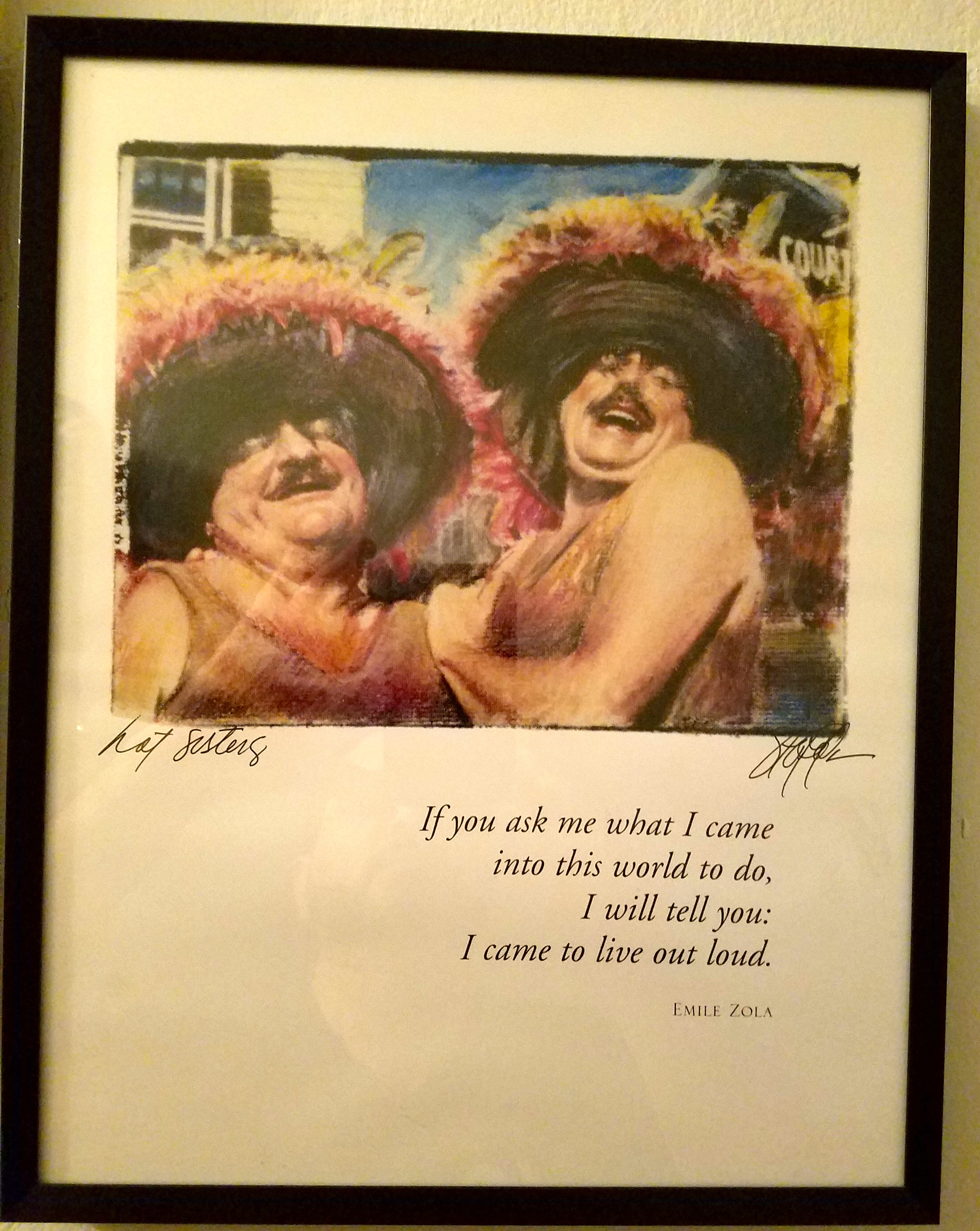 I have a piece of his on the wall of my New York apartment–– It’s a picture of the HAT SISTERS with the EMILE ZOLA quote, “I came to Live Out Loud!”